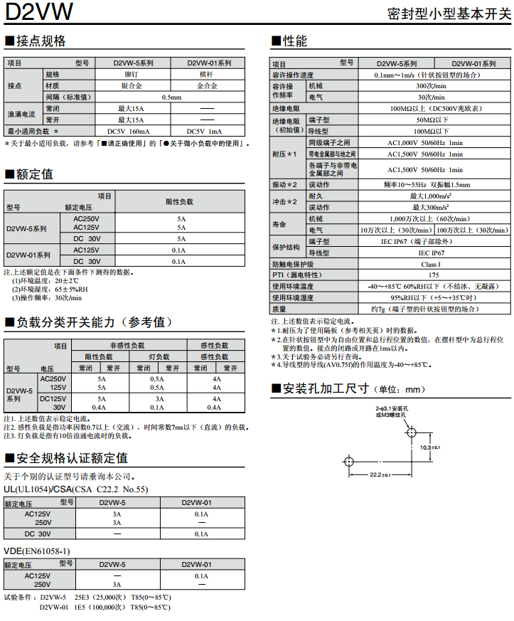 歐姆龍微動(dòng)開關(guān)D2VW系列產(chǎn)品參數(shù):